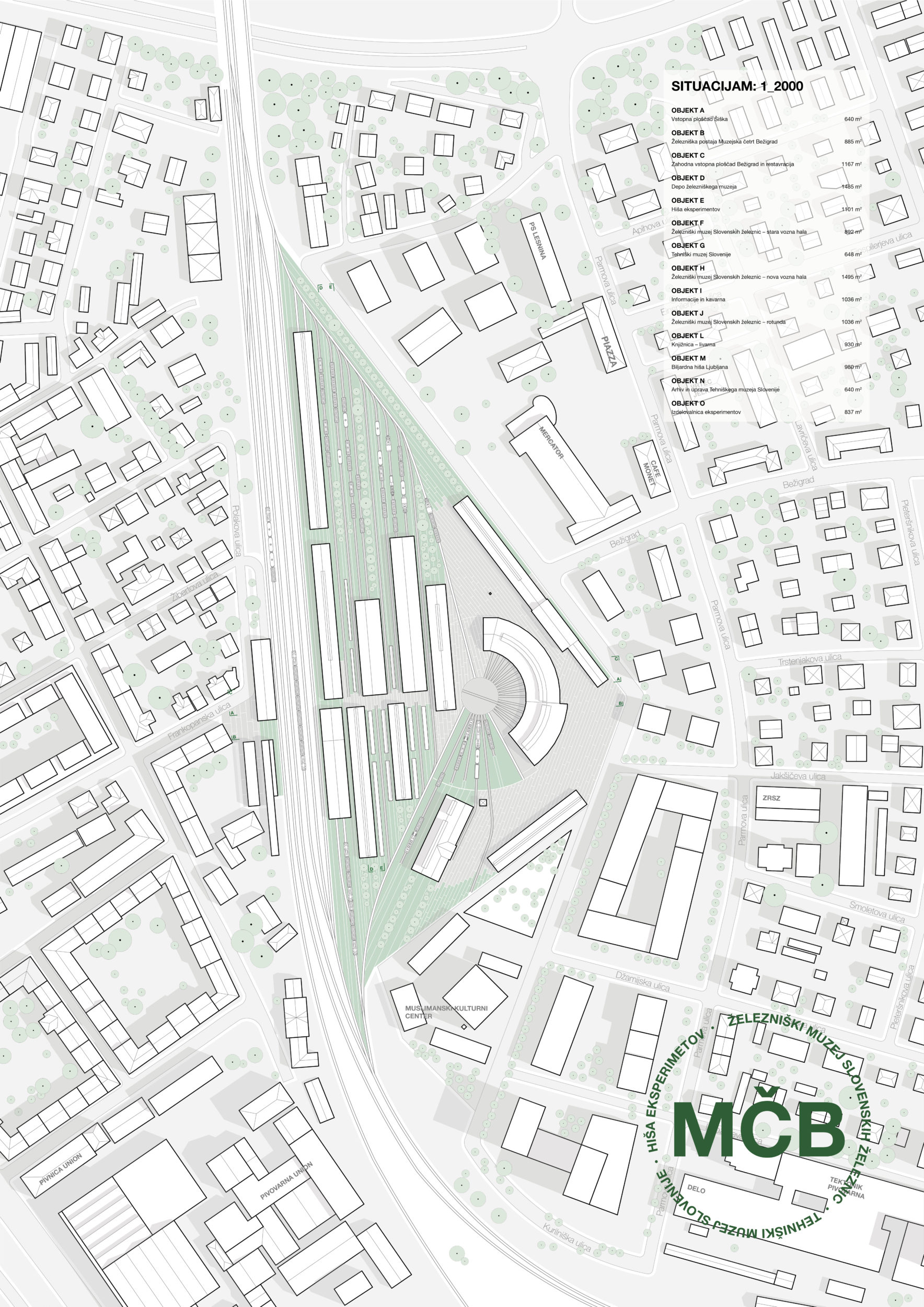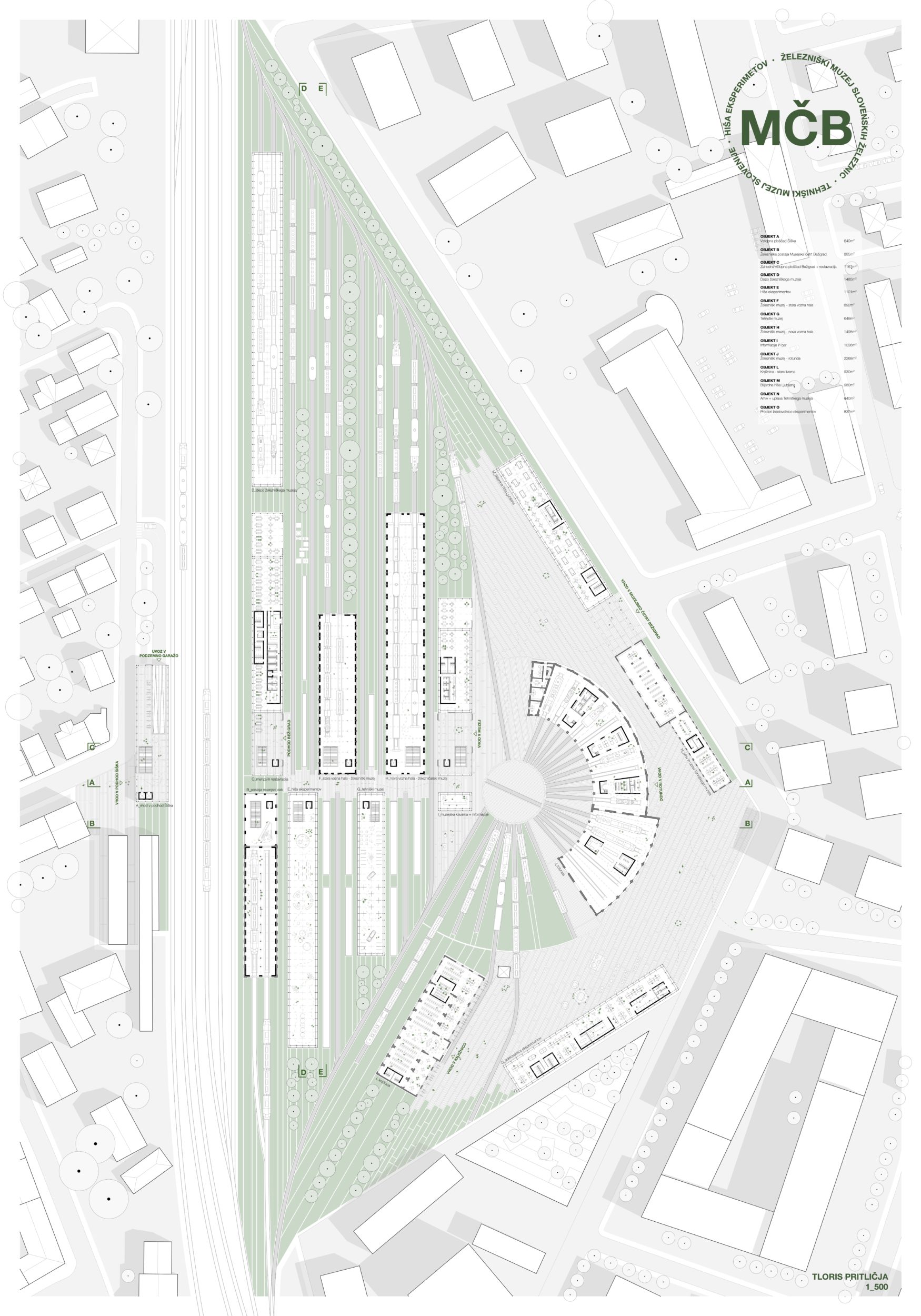 Na izbrani lokaciji v okviru naloge zasnujem bežigrajsko muzejsko četrt, ki bo vključevala Železniški muzej, izpostavo Tehniškega muzeja Slovenije, Hišo eksperimentov, muzejski park in raznolik spremljevalni mestotvorni program. Koncept Muzejske četrti Bežigrad (MČB) je zasnovan okrog osrednje podzemne povezave med Bežigradom in Šiško. Na to povezavo se navezujejo vsi muzejski objekti, ki dobijo vzdolž le-te skupno predverje.